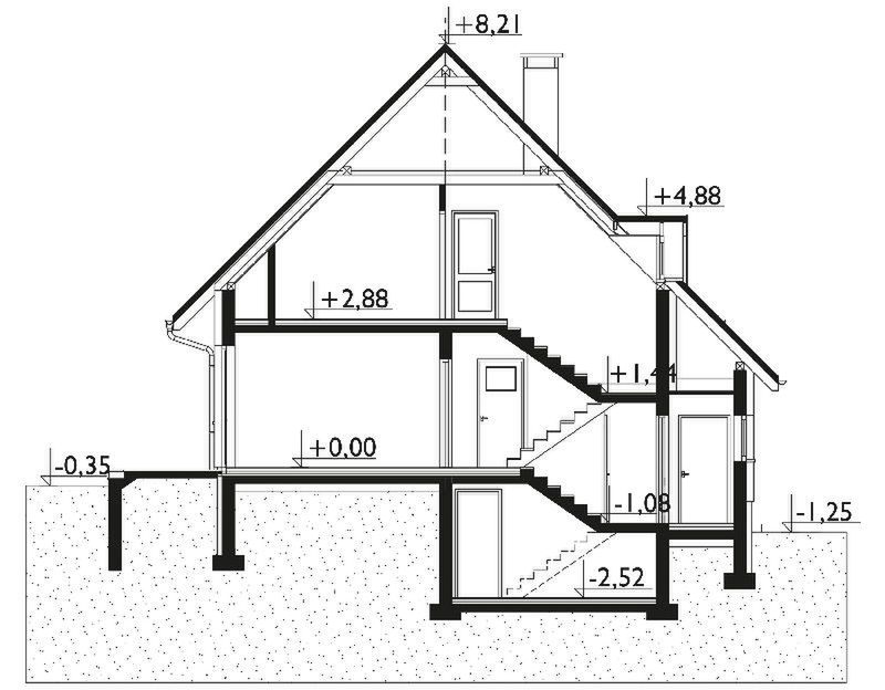 Wersja technologiczna: murowana - beton komórkowy. Strop: żelbetowy monolityczny. Typ schodów: płytowe żelbetowe. Konstrukcja dachu: drewniana krokwiowo-jętkowa. Typ ogrzewania: Kocioł na gaz. Dostępna wersja z pompą ciepła: Tak. Ściany zewnętrzne: 24 cm beton komórkowy. Ściany wewnętrzne: 24 cm beton komórkowy. Ściany wewnętrzne działowe: 12 cm beton komórkowy.