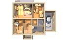 Graficzne opracowanie rzutów poglądowych widocznych na karcie projektu zostało wykonane przez Extradom.pl. Prezentowane przez Extradom.pl wizualizacje wykonane zostały przez autora projektu i należy poczytywać je jedynie za przykład i propozycję wykończenia, wizję architektoniczną autora projektu. Ostateczne wykończenie budynku może nastąpić na wiele sposobów. Szczegółowe rozwiązania zastosowane w oferowanej dokumentacji - w tym również ilość, lokalizacje i wygląd okien, drzwi, kominów - mogą w niewielkim stopniu różnić się od prezentowanej wizualizacji budynku.