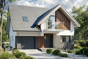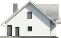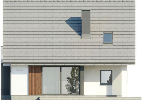 Ściany domu zaprojektowaliśmy z gazobetonu z dociepleniem styropianem, strop jest gęstożebrowy typu Rector, więźbę mamy w 100% drewnianą. Pokrycie dachu może stanowić dowolna dachówka ceramiczna lub betonowa. Elewacje są tynkowane na biało i szaro, z fragmentami obłożonymi drewnem. Wszystkie materiały można dowolnie wymieniać na inne na etapie adaptacji.