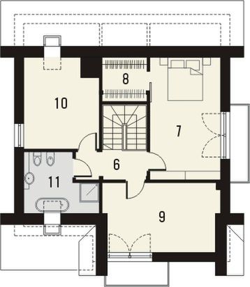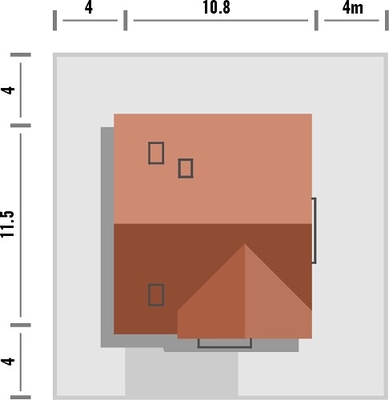 Graficzne opracowanie rzutów poglądowych widocznych na karcie projektu zostało wykonane przez Extradom.pl. Prezentowane przez Extradom.pl wizualizacje wykonane zostały przez autora projektu i należy poczytywać je jedynie za przykład i propozycję wykończenia, wizję architektoniczną autora projektu. Ostateczne wykończenie budynku może nastąpić na wiele sposobów. Szczegółowe rozwiązania zastosowane w oferowanej dokumentacji - w tym również ilość, lokalizacje i wygląd okien, drzwi, kominów - mogą w niewielkim stopniu różnić się od prezentowanej wizualizacji budynku.