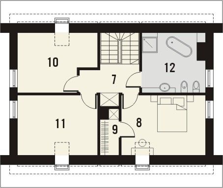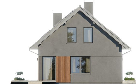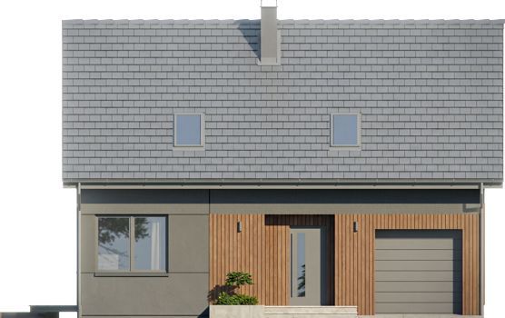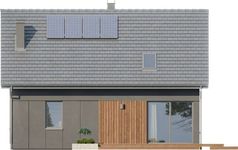 Graficzne opracowanie rzutów poglądowych widocznych na karcie projektu zostało wykonane przez Extradom.pl. Prezentowane przez Extradom.pl wizualizacje wykonane zostały przez autora projektu i należy poczytywać je jedynie za przykład i propozycję wykończenia, wizję architektoniczną autora projektu. Ostateczne wykończenie budynku może nastąpić na wiele sposobów. Szczegółowe rozwiązania zastosowane w oferowanej dokumentacji - w tym również ilość, lokalizacje i wygląd okien, drzwi, kominów - mogą w niewielkim stopniu różnić się od prezentowanej wizualizacji budynku.