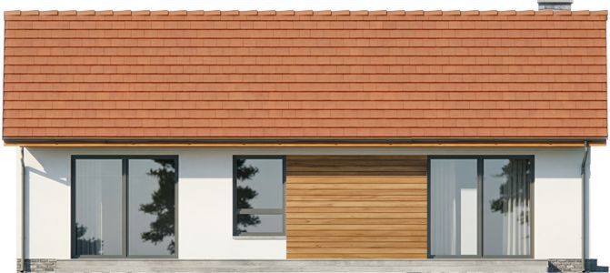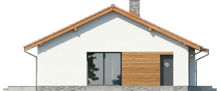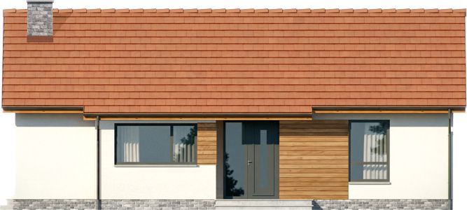 Ściany zaprojektowano w technologii murowanej z gazobetonu z fasadami docieplonymi styropianem. Lekki sufit mamy tu podwieszony do więźby wykonanej z drewna i zaizolowany wełną mineralną. Dach może być kryty dowolną dachówką ceramiczną lub betonową. Materiały elewacyjne to tynk oraz płytki klinkierowe na cokole plus deskowanie na fragmentach fasad. Technologie można dowolnie wymienić na inne, a zmiany najlepiej wprowadzać już na etapie adaptacji.