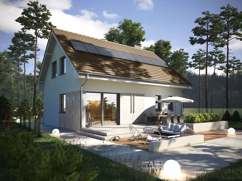 Materiały, jakie przewidzieliśmy w projekcie, to bloczki gazobetonowe z fasadami ocieplonymi styropianem, strop gęstożebrowy i drewnianą więźbę dachowa pokrytą dachówkami. Inne rozwiązania oraz zmiany w rozplanowaniu ścian w środku wprowadzić można już na etapie adaptacji. Dokumentacja dostępna jest w wersji z ogrzewaniem gazowym i grzejnikami albo z pompą ciepła i podłogówką.