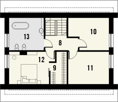 Graficzne opracowanie rzutów poglądowych widocznych na karcie projektu zostało wykonane przez Extradom.pl. Prezentowane przez Extradom.pl wizualizacje wykonane zostały przez autora projektu i należy poczytywać je jedynie za przykład i propozycję wykończenia, wizję architektoniczną autora projektu. Ostateczne wykończenie budynku może nastąpić na wiele sposobów. Szczegółowe rozwiązania zastosowane w oferowanej dokumentacji - w tym również ilość, lokalizacje i wygląd okien, drzwi, kominów - mogą w niewielkim stopniu różnić się od prezentowanej wizualizacji budynku.