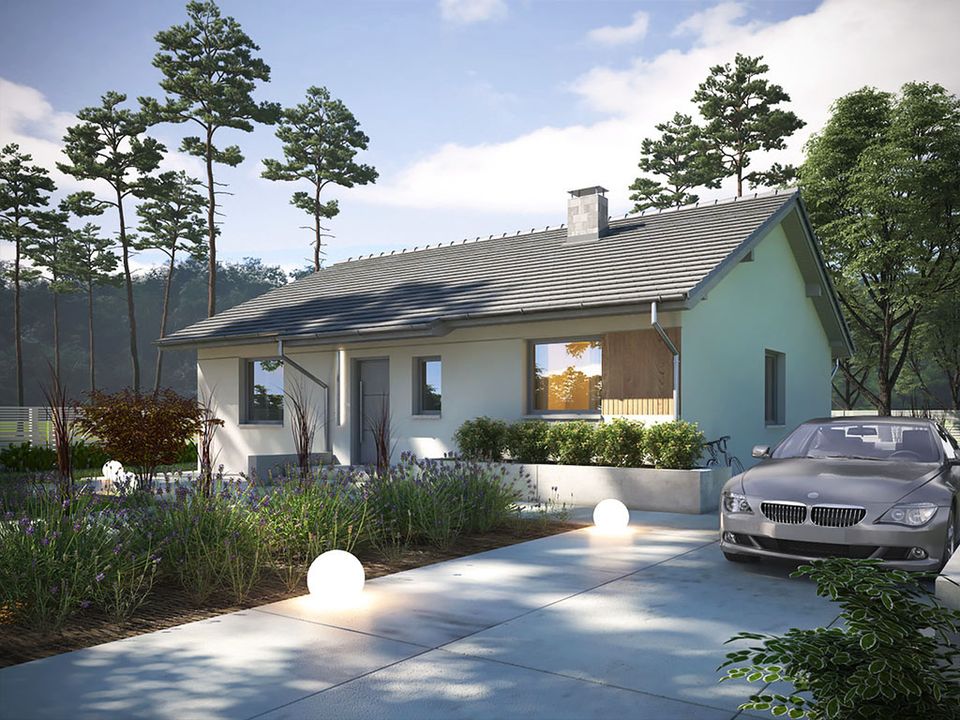 Graficzne opracowanie rzutów poglądowych widocznych na karcie projektu zostało wykonane przez Extradom.pl. Prezentowane przez Extradom.pl wizualizacje wykonane zostały przez autora projektu i należy poczytywać je jedynie za przykład i propozycję wykończenia, wizję architektoniczną autora projektu. Ostateczne wykończenie budynku może nastąpić na wiele sposobów. Szczegółowe rozwiązania zastosowane w oferowanej dokumentacji - w tym również ilość, lokalizacje i wygląd okien, drzwi, kominów - mogą w niewielkim stopniu różnić się od prezentowanej wizualizacji budynku.