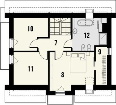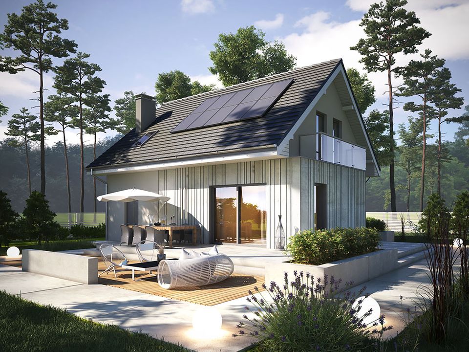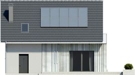 Przewidziane w gotowej dokumentacji materiały można zmienić na dowolne inne, wprowadzając odpowiednie korekty na etapie adaptacji. My sugerujemy postawienie domu z lekkiego, ciepłego i popularnego gazobetonu i wykonanie nieskomplikowanego stropu gęstożebrowego. Drewnianą więźbę można pokryć dowolną dachówką zakładkową albo też karpiówką, a na lukarnie z przodu mamy daszek kryty blachą na rąbek stojący. Projekt dostępny jest w dwóch wersjach ogrzewania: z piecem gazowym i grzejnikami oraz z powietrzną pompą ciepła i podłogówką, a także w wariancie podstawowym i lustrzanym.