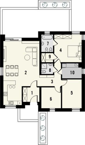 Graficzne opracowanie rzutów poglądowych widocznych na karcie projektu zostało wykonane przez Extradom.pl. Prezentowane przez Extradom.pl wizualizacje wykonane zostały przez autora projektu i należy poczytywać je jedynie za przykład i propozycję wykończenia, wizję architektoniczną autora projektu. Ostateczne wykończenie budynku może nastąpić na wiele sposobów. Szczegółowe rozwiązania zastosowane w oferowanej dokumentacji - w tym również ilość, lokalizacje i wygląd okien, drzwi, kominów - mogą w niewielkim stopniu różnić się od prezentowanej wizualizacji budynku.