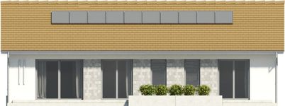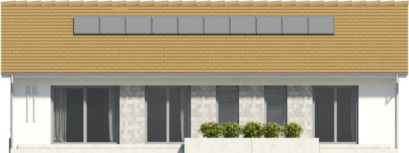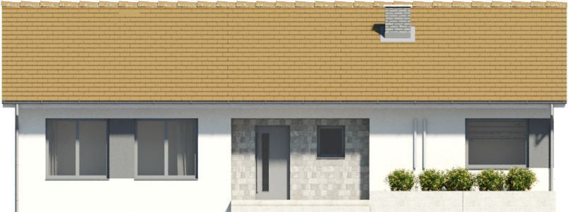 Projekt gotowy domu Krajobrazy 84 sugeruje postawienie budynku w tradycyjnej technologii nurowanej z bloczków gazobetonowych i wykonanie prostej, w całości drewnianej więźby. Dach może być pokryty dowolnym materiałem, na przykład dachówkami ceramicznymi albo betonowymi. Elewacje tej nowoczesnej parterówki są tynkowane, jedynie ściana przy wejściu i fragmenty pomiędzy oknami balkonowymi z tyłu można opłytkować. Dokumentacja jest do kupienia w jednym z dwóch wariantów ogrzewania: z piecem gazowym zasilającym grzejniki płytowe albo z powietrzną pompą ciepła i podłogówką.