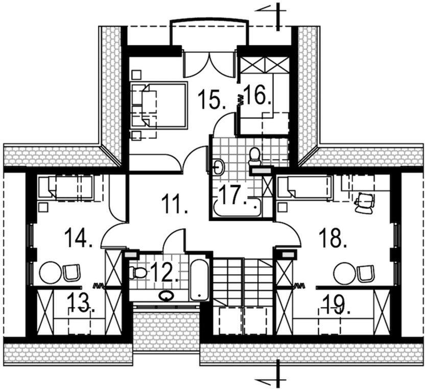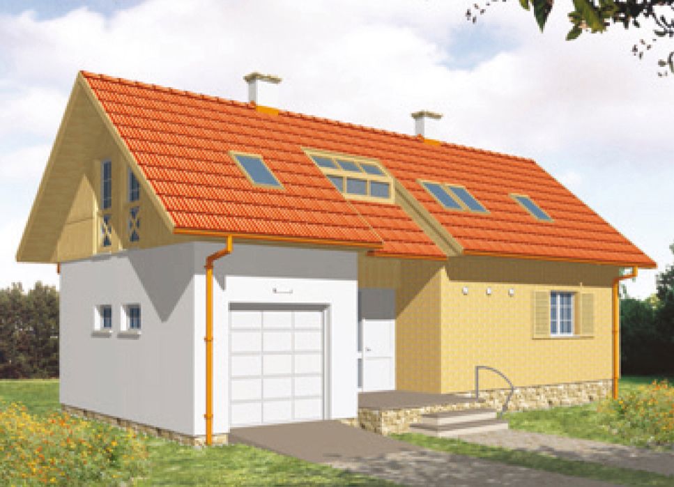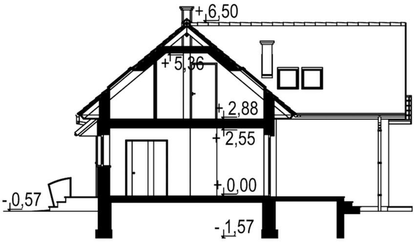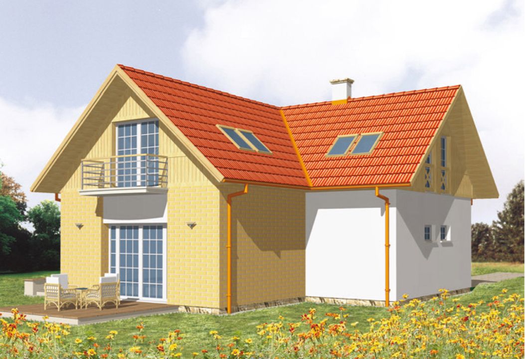 Graficzne opracowanie rzutów poglądowych widocznych na karcie projektu zostało wykonane przez Extradom.pl. Prezentowane przez Extradom.pl wizualizacje wykonane zostały przez autora projektu i należy poczytywać je jedynie za przykład i propozycję wykończenia, wizję architektoniczną autora projektu. Ostateczne wykończenie budynku może nastąpić na wiele sposobów. Szczegółowe rozwiązania zastosowane w oferowanej dokumentacji - w tym również ilość, lokalizacje i wygląd okien, drzwi, kominów - mogą w niewielkim stopniu różnić się od prezentowanej wizualizacji budynku.