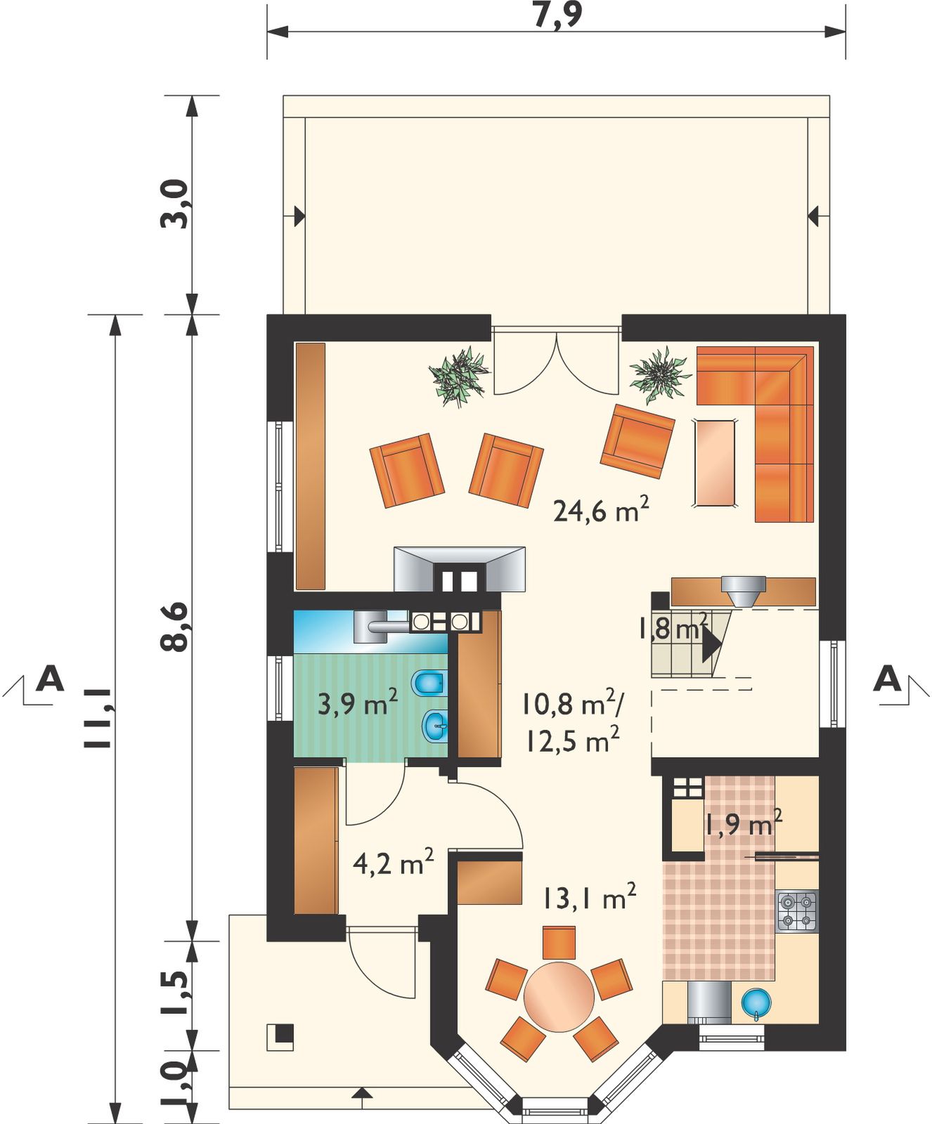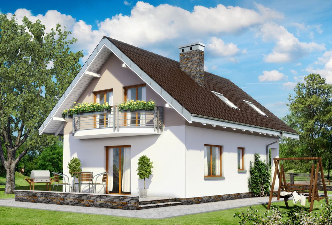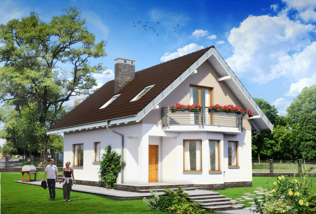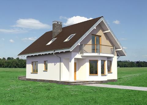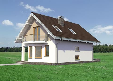 Graficzne opracowanie rzutów poglądowych widocznych na karcie projektu zostało wykonane przez Extradom.pl. Prezentowane przez Extradom.pl wizualizacje wykonane zostały przez autora projektu i należy poczytywać je jedynie za przykład i propozycję wykończenia, wizję architektoniczną autora projektu. Ostateczne wykończenie budynku może nastąpić na wiele sposobów. Szczegółowe rozwiązania zastosowane w oferowanej dokumentacji - w tym również ilość, lokalizacje i wygląd okien, drzwi, kominów - mogą w niewielkim stopniu różnić się od prezentowanej wizualizacji budynku.