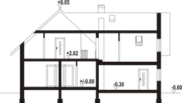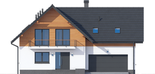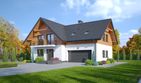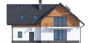 Graficzne opracowanie rzutów poglądowych widocznych na karcie projektu zostało wykonane przez Extradom.pl. Prezentowane przez Extradom.pl wizualizacje wykonane zostały przez autora projektu i należy poczytywać je jedynie za przykład i propozycję wykończenia, wizję architektoniczną autora projektu. Ostateczne wykończenie budynku może nastąpić na wiele sposobów. Szczegółowe rozwiązania zastosowane w oferowanej dokumentacji - w tym również ilość, lokalizacje i wygląd okien, drzwi, kominów - mogą w niewielkim stopniu różnić się od prezentowanej wizualizacji budynku.