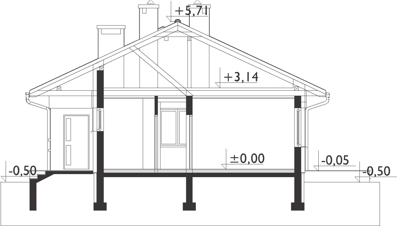 Wersja technologiczna: murowana - ceramika. Strop: drewniany belkowy. Typ schodów: brak. Konstrukcja dachu: drewniana mieszana. Typ ogrzewania: Kocioł na gaz. Dostępna wersja z pompą ciepła: Tak. Ściany zewnętrzne: 25 cm ceramika. Ściany wewnętrzne: 25 cm ceramika. Ściany wewnętrzne działowe: 11 cm ceramika.