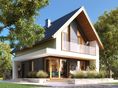 Graficzne opracowanie rzutów poglądowych widocznych na karcie projektu zostało wykonane przez Extradom.pl. Prezentowane przez Extradom.pl wizualizacje wykonane zostały przez autora projektu i należy poczytywać je jedynie za przykład i propozycję wykończenia, wizję architektoniczną autora projektu. Ostateczne wykończenie budynku może nastąpić na wiele sposobów. Szczegółowe rozwiązania zastosowane w oferowanej dokumentacji - w tym również ilość, lokalizacje i wygląd okien, drzwi, kominów - mogą w niewielkim stopniu różnić się od prezentowanej wizualizacji budynku.