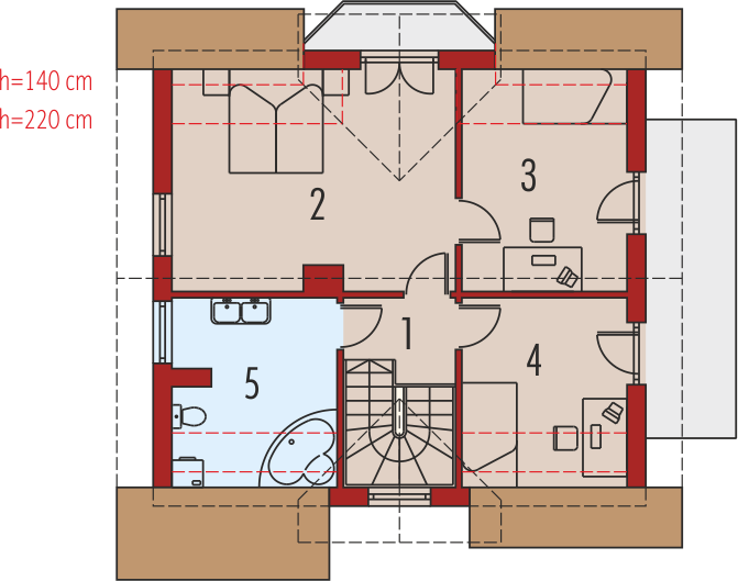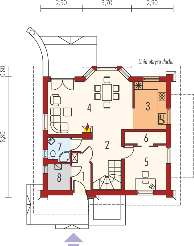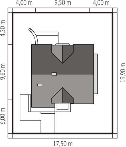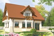 Graficzne opracowanie rzutów poglądowych widocznych na karcie projektu zostało wykonane przez Extradom.pl. Prezentowane przez Extradom.pl wizualizacje wykonane zostały przez autora projektu i należy poczytywać je jedynie za przykład i propozycję wykończenia, wizję architektoniczną autora projektu. Ostateczne wykończenie budynku może nastąpić na wiele sposobów. Szczegółowe rozwiązania zastosowane w oferowanej dokumentacji - w tym również ilość, lokalizacje i wygląd okien, drzwi, kominów - mogą w niewielkim stopniu różnić się od prezentowanej wizualizacji budynku.