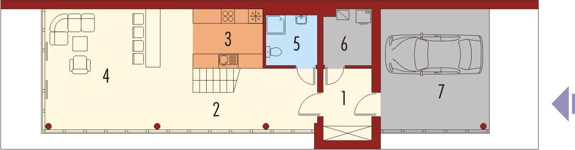 Graficzne opracowanie rzutów poglądowych widocznych na karcie projektu zostało wykonane przez Extradom.pl. Prezentowane przez Extradom.pl wizualizacje wykonane zostały przez autora projektu i należy poczytywać je jedynie za przykład i propozycję wykończenia, wizję architektoniczną autora projektu. Ostateczne wykończenie budynku może nastąpić na wiele sposobów. Szczegółowe rozwiązania zastosowane w oferowanej dokumentacji - w tym również ilość, lokalizacje i wygląd okien, drzwi, kominów - mogą w niewielkim stopniu różnić się od prezentowanej wizualizacji budynku.