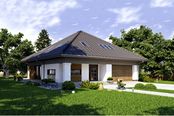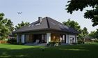 Graficzne opracowanie rzutów poglądowych widocznych na karcie projektu zostało wykonane przez Extradom.pl. Prezentowane przez Extradom.pl wizualizacje wykonane zostały przez autora projektu i należy poczytywać je jedynie za przykład i propozycję wykończenia, wizję architektoniczną autora projektu. Ostateczne wykończenie budynku może nastąpić na wiele sposobów. Szczegółowe rozwiązania zastosowane w oferowanej dokumentacji - w tym również ilość, lokalizacje i wygląd okien, drzwi, kominów - mogą w niewielkim stopniu różnić się od prezentowanej wizualizacji budynku.