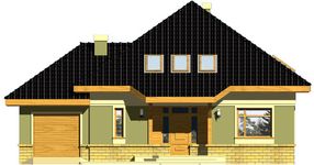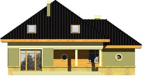 Graficzne opracowanie rzutów poglądowych widocznych na karcie projektu zostało wykonane przez Extradom.pl. Prezentowane przez Extradom.pl wizualizacje wykonane zostały przez autora projektu i należy poczytywać je jedynie za przykład i propozycję wykończenia, wizję architektoniczną autora projektu. Ostateczne wykończenie budynku może nastąpić na wiele sposobów. Szczegółowe rozwiązania zastosowane w oferowanej dokumentacji - w tym również ilość, lokalizacje i wygląd okien, drzwi, kominów - mogą w niewielkim stopniu różnić się od prezentowanej wizualizacji budynku.