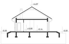 Wersja technologiczna: murowana - ceramika. Strop: gęstożebrowy, HELUZ Miako. Typ schodów: brak. Konstrukcja dachu: drewniana krokwiowa. Typ ogrzewania: Kocioł na gaz. Dostępna wersja z pompą ciepła: Tak. Ściany zewnętrzne: 25 cm ceramika. Ściany wewnętrzne: 25 cm ceramika. Ściany wewnętrzne działowe: 11 cm ceramika.