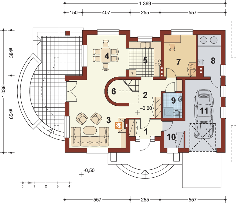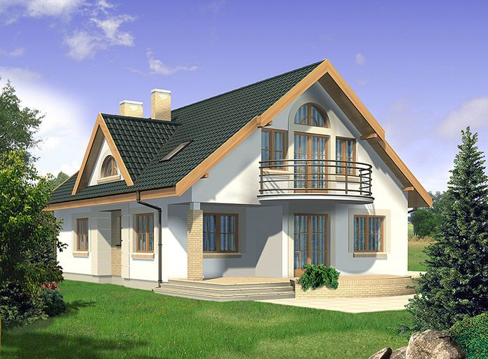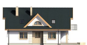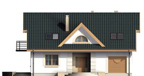 Graficzne opracowanie rzutów poglądowych widocznych na karcie projektu zostało wykonane przez Extradom.pl. Prezentowane przez Extradom.pl wizualizacje wykonane zostały przez autora projektu i należy poczytywać je jedynie za przykład i propozycję wykończenia, wizję architektoniczną autora projektu. Ostateczne wykończenie budynku może nastąpić na wiele sposobów. Szczegółowe rozwiązania zastosowane w oferowanej dokumentacji - w tym również ilość, lokalizacje i wygląd okien, drzwi, kominów - mogą w niewielkim stopniu różnić się od prezentowanej wizualizacji budynku.