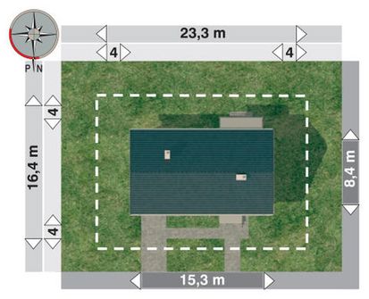 Graficzne opracowanie rzutów poglądowych widocznych na karcie projektu zostało wykonane przez Extradom.pl. Prezentowane przez Extradom.pl wizualizacje wykonane zostały przez autora projektu i należy poczytywać je jedynie za przykład i propozycję wykończenia, wizję architektoniczną autora projektu. Ostateczne wykończenie budynku może nastąpić na wiele sposobów. Szczegółowe rozwiązania zastosowane w oferowanej dokumentacji - w tym również ilość, lokalizacje i wygląd okien, drzwi, kominów - mogą w niewielkim stopniu różnić się od prezentowanej wizualizacji budynku.