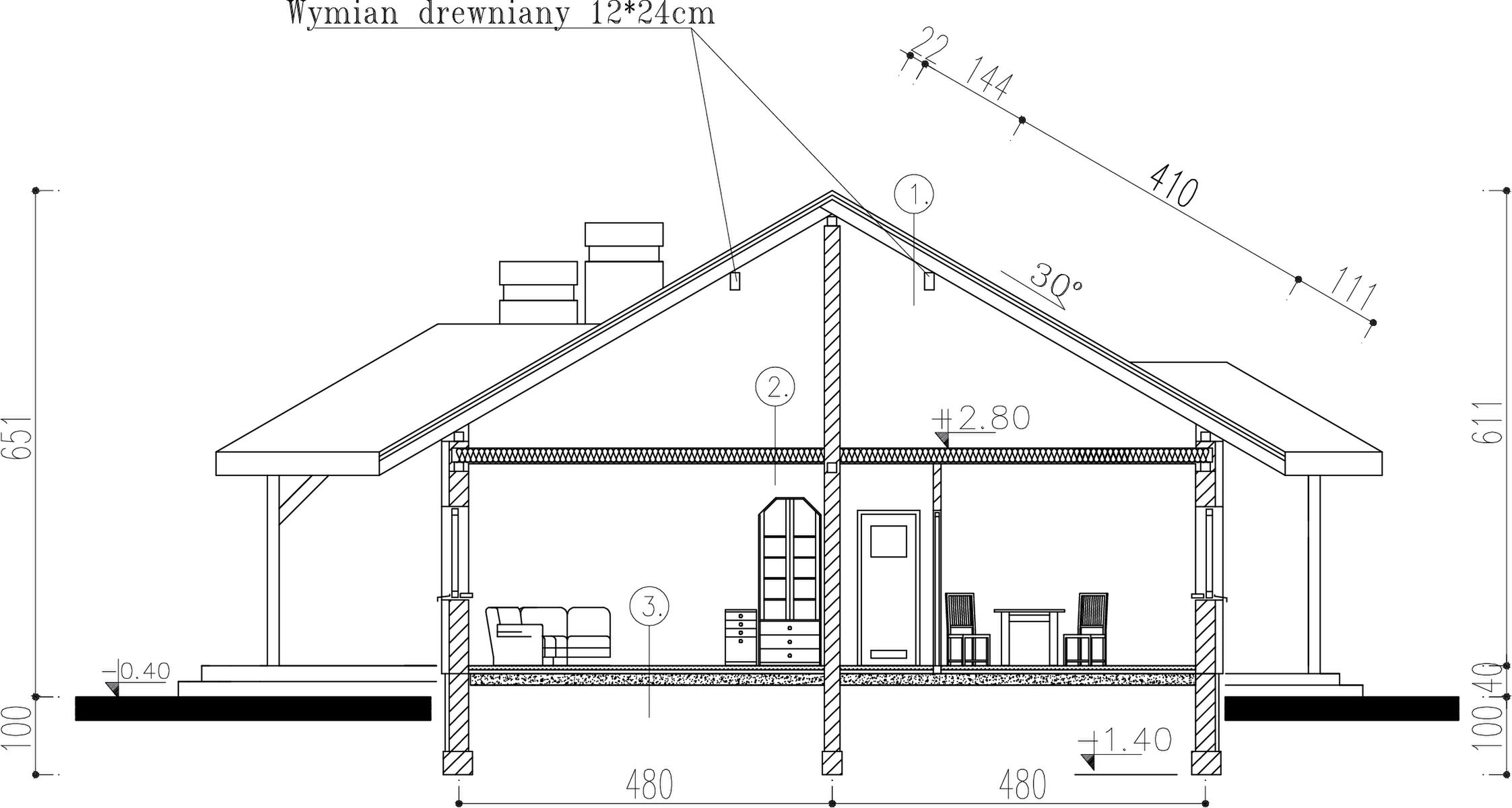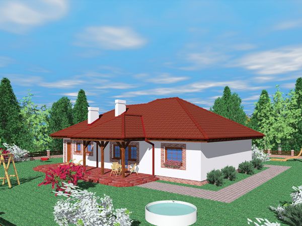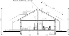 Ławy fundamentowe z betonu żwirowego. Ściany zewnętrzne dwuwarstwowe z pustaków ceramicznych ocieplonych styropianem, ściany wewnętrzne nośne z pustaków ceramicznych, ścianki działowe z cegły dziurawki lub płyt GK, strop drewniany, więźba dachowa drewniana, kryta dachówką cementową lub ceramiczną. Możliwe zastosowanie ogrzewania gazowego, kominkowego lub węglowego - ekologicznego.