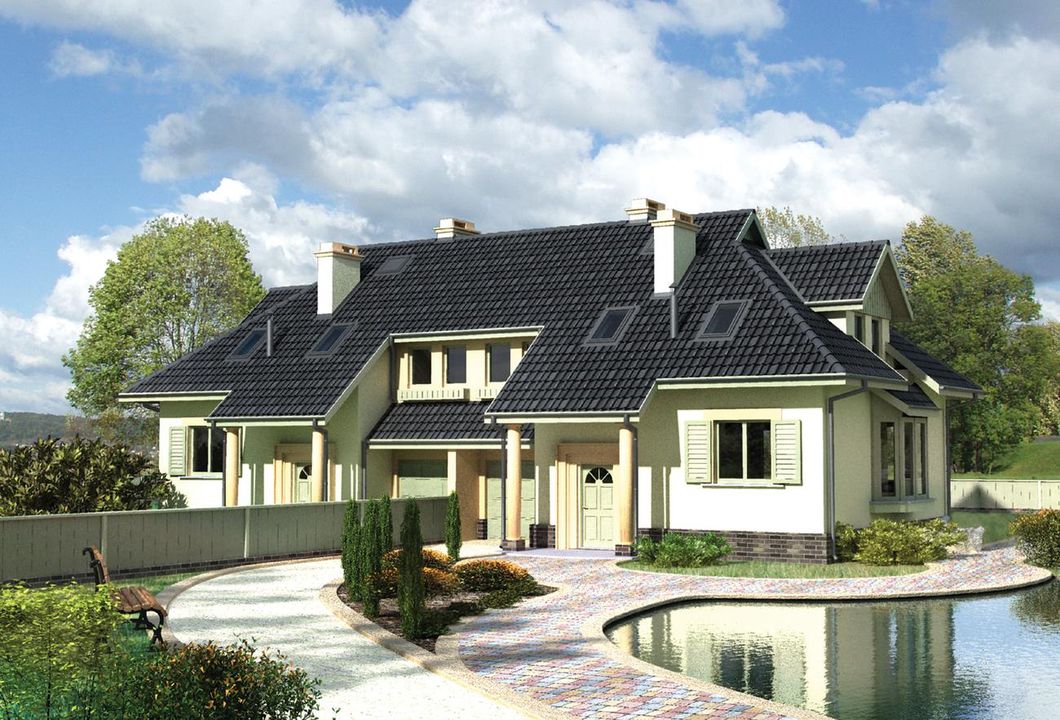 Graficzne opracowanie rzutów poglądowych widocznych na karcie projektu zostało wykonane przez Extradom.pl. Prezentowane przez Extradom.pl wizualizacje wykonane zostały przez autora projektu i należy poczytywać je jedynie za przykład i propozycję wykończenia, wizję architektoniczną autora projektu. Ostateczne wykończenie budynku może nastąpić na wiele sposobów. Szczegółowe rozwiązania zastosowane w oferowanej dokumentacji - w tym również ilość, lokalizacje i wygląd okien, drzwi, kominów - mogą w niewielkim stopniu różnić się od prezentowanej wizualizacji budynku.