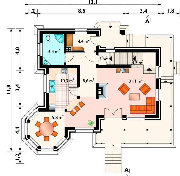 Technologia i konstrukcja: murowana – ceramika. Ściany zewnętrzne: pustak MAX + wełna mineralna lub styropian + cegła modularna. Ściany wewnętrzne: cegła kratówka. Strop: gęstożebrowy. Konstrukcja dachu: drewniana, mieszana. Rodzaj schodów: żelbetowe i drewniane. Typ ogrzewania: kocioł na gaz. Aneks na paliwo stałe: na zamówienie. Pokrycie dachu: dachówka ceramiczna. Elewacja: tynk szlechetny mineralny, kamienna okładzina cokołu.