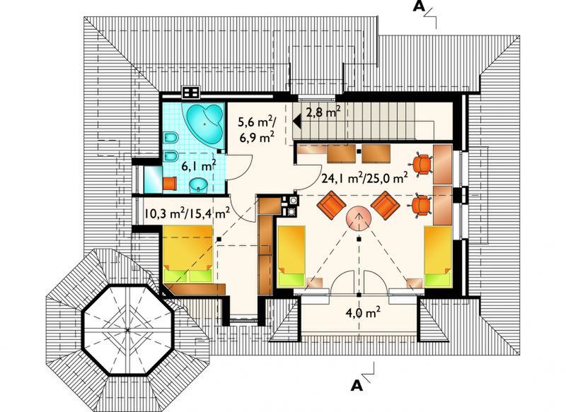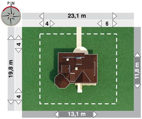 Graficzne opracowanie rzutów poglądowych widocznych na karcie projektu zostało wykonane przez Extradom.pl. Prezentowane przez Extradom.pl wizualizacje wykonane zostały przez autora projektu i należy poczytywać je jedynie za przykład i propozycję wykończenia, wizję architektoniczną autora projektu. Ostateczne wykończenie budynku może nastąpić na wiele sposobów. Szczegółowe rozwiązania zastosowane w oferowanej dokumentacji - w tym również ilość, lokalizacje i wygląd okien, drzwi, kominów - mogą w niewielkim stopniu różnić się od prezentowanej wizualizacji budynku.