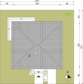 Graficzne opracowanie rzutów poglądowych widocznych na karcie projektu zostało wykonane przez Extradom.pl. Prezentowane przez Extradom.pl wizualizacje wykonane zostały przez autora projektu i należy poczytywać je jedynie za przykład i propozycję wykończenia, wizję architektoniczną autora projektu. Ostateczne wykończenie budynku może nastąpić na wiele sposobów. Szczegółowe rozwiązania zastosowane w oferowanej dokumentacji - w tym również ilość, lokalizacje i wygląd okien, drzwi, kominów - mogą w niewielkim stopniu różnić się od prezentowanej wizualizacji budynku.