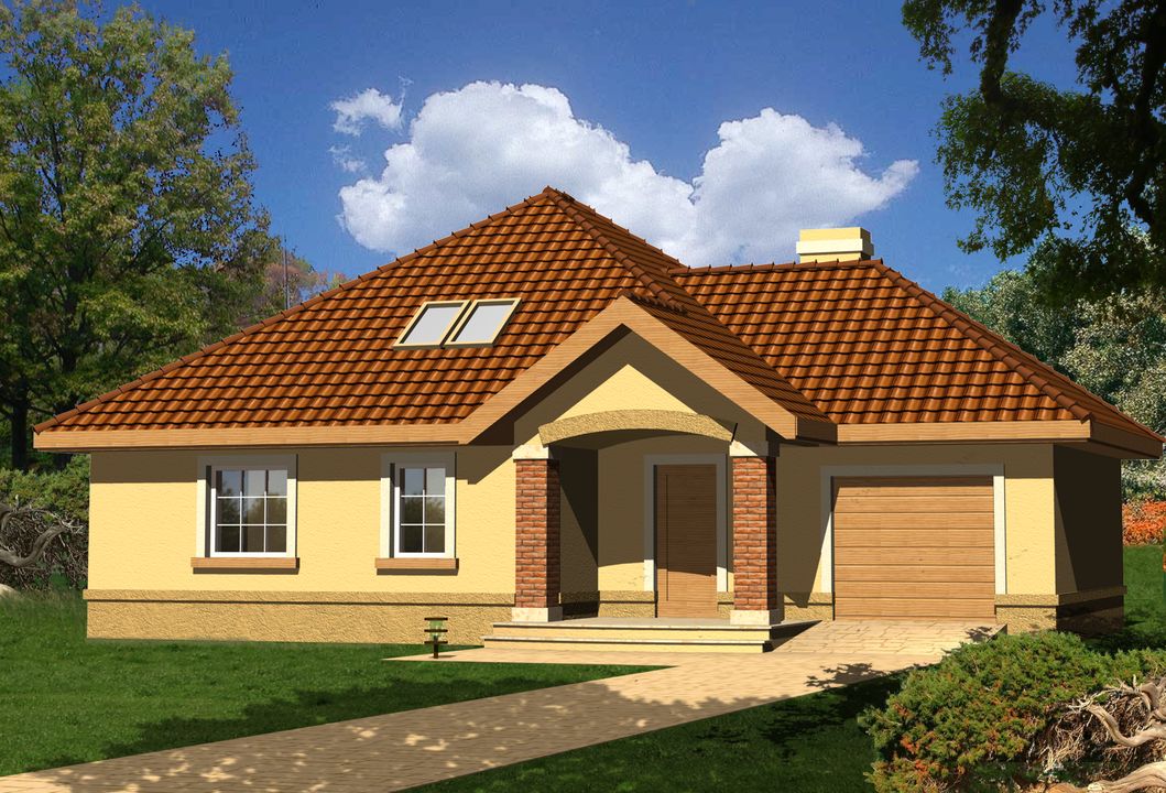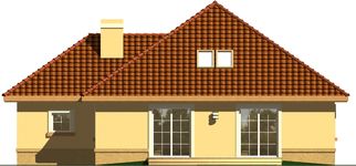 Dom ma ściany z gazobetonu z dociepleniem, spięte stropem typu Teriva. Drewnianą więźbę pokrywa dachówka zakładkowa. Na zmiany materiałów wystawiamy bezpłatną zgodę. Tynkowane elewacje ozdobione są obłożonymi klinkierem słupami podtrzymującymi zadaszenie ganku.