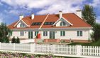 Graficzne opracowanie rzutów poglądowych widocznych na karcie projektu zostało wykonane przez Extradom.pl. Prezentowane przez Extradom.pl wizualizacje wykonane zostały przez autora projektu i należy poczytywać je jedynie za przykład i propozycję wykończenia, wizję architektoniczną autora projektu. Ostateczne wykończenie budynku może nastąpić na wiele sposobów. Szczegółowe rozwiązania zastosowane w oferowanej dokumentacji - w tym również ilość, lokalizacje i wygląd okien, drzwi, kominów - mogą w niewielkim stopniu różnić się od prezentowanej wizualizacji budynku.