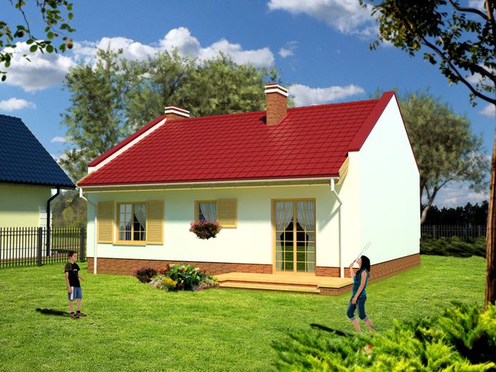 Po podjęciu decyzji o wybudowaniu własnego domu postanowiłem sprzedać swoje mieszkanie. Uzyskana kwota musiała starczyć mi zarówno na zakup działki jak i postawienie i wykończenie budynku, dlatego też szukałem projektu, który będzie tani w realizacji. Projekt Kwiat Paproci 74 KRN1031 spełniał ten warunek, a dodatkowo wydał mi się bardzo funkcjonalny. Spodobały mi się duże rozmiary kuchni z uwzględnionym w niej aneksem jadalnianym, a ilość pokoi spełniała moje oczekiwania. Dodatkowo, architekt przewidział wykonanie pomieszczenia gospodarczego, które jest naprawdę praktycznym rozwiązaniem.Na samym początku inwestycji natrafiłem na pewien kłopot wynikający z warunków planu zagospodarowania przestrzennego, które określają, iż wszystkie budynki w mojej okolicy muszą posiadać kalenicę prostopadłą do drogi. Co prawda, mogłem zdecydować się na przeprojektowanie konstrukcji dachu, ale obawiałem się, że dom nie będzie wyglądał już tak dobrze. Ostatecznie musiałem ustawić go bokiem. Z tego względu, schodki tarasowe wykonałem w kierunku drogi, a także postanowiłem zabudować ganek, gdyż przy takim usytuowaniu, drzwi frontowe znalazły się po nawietrznej stronie.Z samą budową nie miałem już żadnych problemów. Dokumentacja techniczna nie zawierała błędów, a prosta konstrukcja budynku sprawiła, iż jego realizacja była łatwa i przebiegła w bardzo krótkim czasie. Pierwsze prace rozpocząłem 25 grudnia 2013 r. Ówczesna zima była bardzo łagodna, co umożliwiło wykonywanie prac w tym okresie i zakończenie całej inwestycji już na początku lipca 2014 r. Ściany zostały wymurowane z bloczków Silka 24 cm, a dach pokryłem blachodachówką. Bryłę z zewnątrz ociepliłem 15 cm warstwą styropianu, zaś izolację poddasza tworzy wełna mineralna o grubości 15 cm oraz podwójna folia paroizolacyjna. Przy zastosowanych materiałach dom jest naprawdę ekonomiczny. Na całej jego powierzchni zainstalowałem system ogrzewania podłogowego i tym samym całkowicie zrezygnowałem z grzejników. Z gazu korzystam do ogrzania pomieszczeń i wody użytkowej oraz gotowania, gdyż w kuchni zamontowałem kuchenkę gazową. Miesięczne rachunki za to rozwiązanie wynoszą mnie średnio 200 zł, co uważam jest bardzo korzystną kwotą. Jestem również zadowolony z kosztów całej inwestycji. Bez problemu zmieściłem się w oszacowanej kwocie, jednak muszę zaznaczyć, iż wiele prac wykonałem własnymi siłami.Do projektu Kwiat Paproci 74 KRN1031 wprowadziłem kilka zmian. Świetnym pomysłem było przesuniecie kominka bliżej środka ścianki działowej w salonie, tak iż obecnie znajduje się on prawie na równi z krótką ścianką przy łazience. W oryginalnej wersji komin wychodził praktycznie z kalenicy, jednak ze względu na zastosowanie na dachu podwójnej blachy osłonowej, wolałem go nieco odsunąć od centralnej części więźby. To rozwiązanie poprawiło również ustawność wnętrza. Gdy odwiedza mnie większa ilość gości, nie mam żadnego problemu aby w salonie rozłożyć w poprzek stół o sporych rozmiarach.Uważam, że warto również rozważyć zwiększenie wysokości ogniomurków, które oryginalnie są dosyć niskie. W moim przypadku mają one 25 cm wys. (po pokryciu dachu blachodachówką wystają na 22 cm.) co moim zdaniem prezentuje się bardziej korzystnie. Takie rozwiązanie polecam szczególnie osobom, które zdecydują się na zastosowanie dachówki ceramicznej, która jest grubszym materiałem niż blacha. Kolejną modyfikacją było wydłużenie wiatrołapu do poziomu ścianek nośnych w pokoju i kuchni. Dzięki temu zyskałem więcej miejsca na ściągnięcie butów i powieszenie kurtek, co bardzo się przydaje gdy zapraszam znajomych. Postanowiłem doświetlić salon i wstawiłem w nim jedno dodatkowe okno o wymiarach 90x90 cm. Takie same przeszklenia zastosowałem również na strychu na ścianach szczytowych. Oprócz tego, nieco zmniejszyłem okno w łazience, co pozwoliło mi na wstawienie w niej kabiny prysznicowej.Jestem bardzo zadowolony z wyboru projektu domu parterowego Kwiat Paproci 74 KRN1031, który w całości spełnił moje oczekiwania. Wnętrze jest bardzo funkcjonalne, a pokoje przestronne. Pomieszczenie gospodarcze jest naprawdę praktyczne i rewelacyjnie spełnia swoją funkcję - służy mi jako kotłownia, pralnio-suszarnia oraz zaplecze magazynowe. Dom podoba się nie tylko mi, ale również wszystkim odwiedzającym mnie gościom, a nawet zdarza się, że projekt chwalą i pytają o niego zupełnie obcy ludzie. Wszyscy są bardzo zaskoczeni, ponieważ z zewnątrz budynek wygląda na malutki, jednak po wejściu do środka okazuje się, że jest w nim naprawdę sporo miejsca. Z czystym sumieniem mogę polecić innym ten projekt. Pozdrawiam.