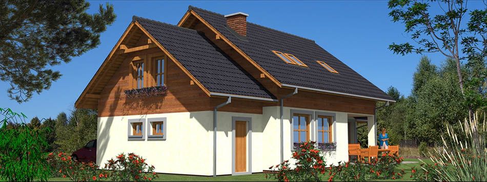 Fundamenty: żelbetowe, wylewane Ściany zewnetrzne: murowane, jednowarstwowe, beton komórkowy lub ceramika Strop: żelbetowy, prefabrykowany Schody: żelbetowe lub drewniane. Pokrycie dachu: dachówka betonowa Nachylenie dachu 37°. Sposób ogrzewania: piec dwufunkcyjny na gaz ziemny lub płynny. Alternatywnie piec na paliwo stałe.