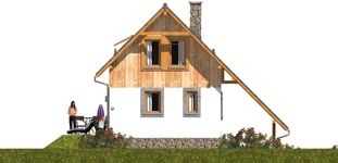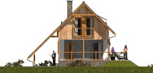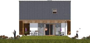 Graficzne opracowanie rzutów poglądowych widocznych na karcie projektu zostało wykonane przez Extradom.pl. Prezentowane przez Extradom.pl wizualizacje wykonane zostały przez autora projektu i należy poczytywać je jedynie za przykład i propozycję wykończenia, wizję architektoniczną autora projektu. Ostateczne wykończenie budynku może nastąpić na wiele sposobów. Szczegółowe rozwiązania zastosowane w oferowanej dokumentacji - w tym również ilość, lokalizacje i wygląd okien, drzwi, kominów - mogą w niewielkim stopniu różnić się od prezentowanej wizualizacji budynku.