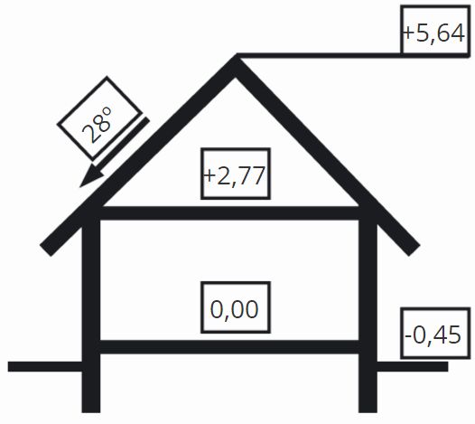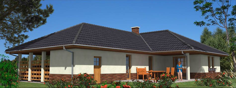 Fundamenty: żelbetowe, wylewane Ściany zewnetrzne: murowane, jednowarstwowe, beton komórkowy lub ceramika Strop: drewniany, belkowy, zamknięty. Pokrycie dachu: dachówka ceramiczna. Nachylenie dachu: 28°. Sposób ogrzewania: piec dwufunkcyjny na gaz ziemny lub płynny. Alternatywnie piec na paliwo stałe.