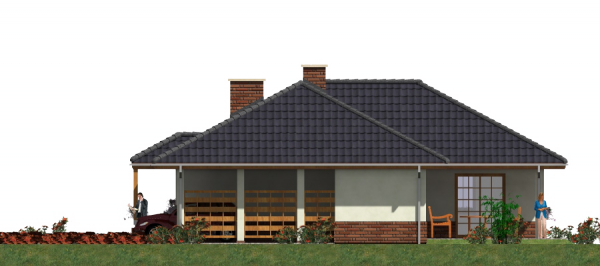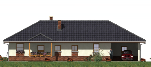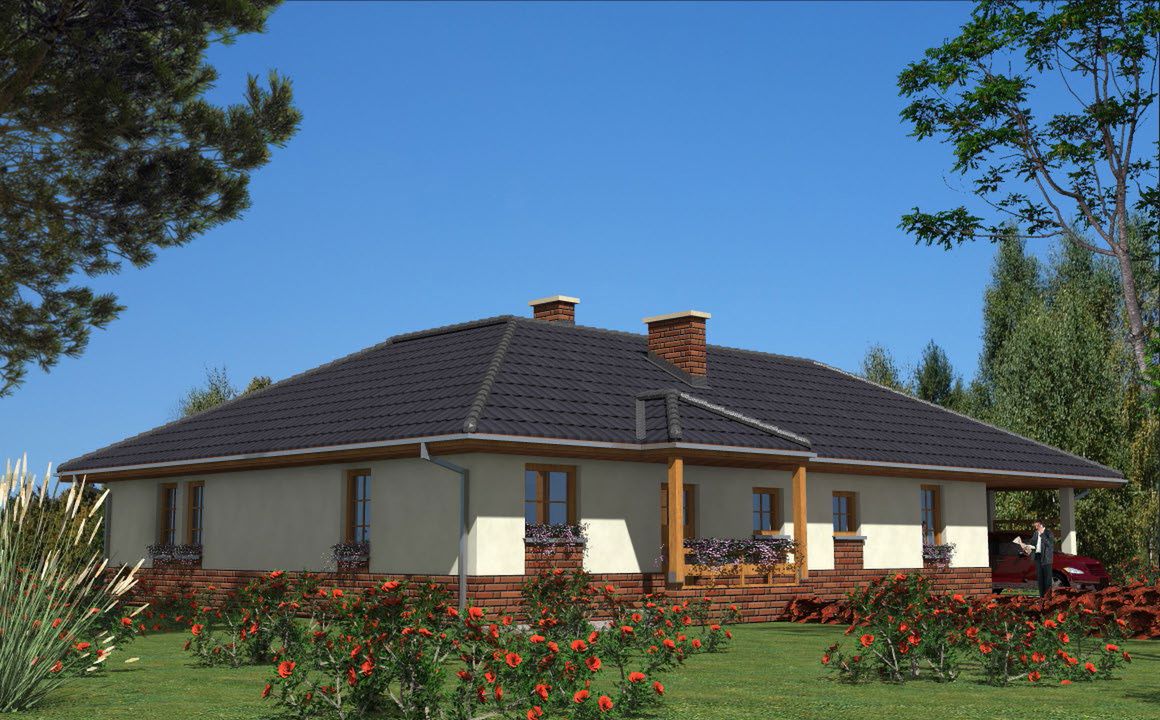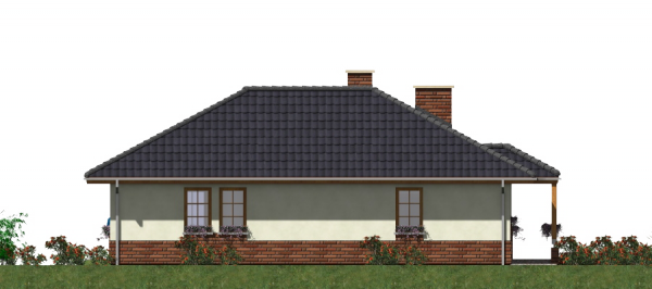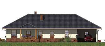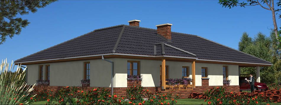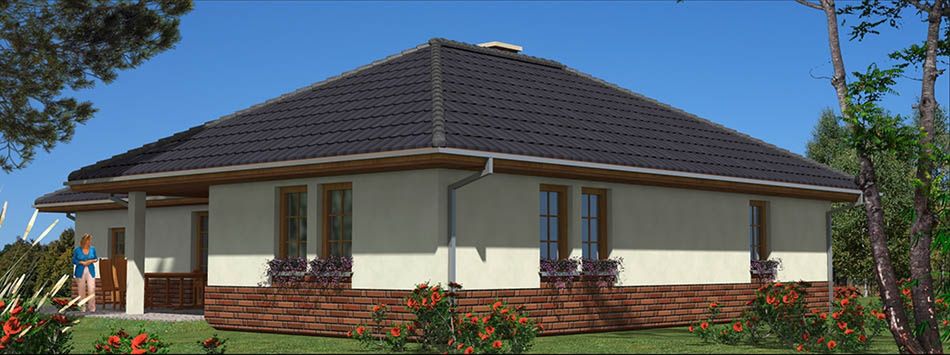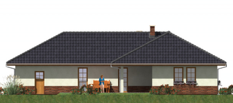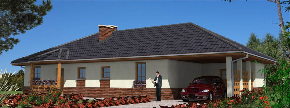 Graficzne opracowanie rzutów poglądowych widocznych na karcie projektu zostało wykonane przez Extradom.pl. Prezentowane przez Extradom.pl wizualizacje wykonane zostały przez autora projektu i należy poczytywać je jedynie za przykład i propozycję wykończenia, wizję architektoniczną autora projektu. Ostateczne wykończenie budynku może nastąpić na wiele sposobów. Szczegółowe rozwiązania zastosowane w oferowanej dokumentacji - w tym również ilość, lokalizacje i wygląd okien, drzwi, kominów - mogą w niewielkim stopniu różnić się od prezentowanej wizualizacji budynku.
