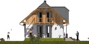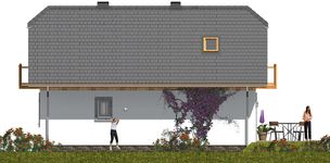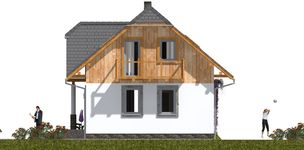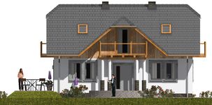 Graficzne opracowanie rzutów poglądowych widocznych na karcie projektu zostało wykonane przez Extradom.pl. Prezentowane przez Extradom.pl wizualizacje wykonane zostały przez autora projektu i należy poczytywać je jedynie za przykład i propozycję wykończenia, wizję architektoniczną autora projektu. Ostateczne wykończenie budynku może nastąpić na wiele sposobów. Szczegółowe rozwiązania zastosowane w oferowanej dokumentacji - w tym również ilość, lokalizacje i wygląd okien, drzwi, kominów - mogą w niewielkim stopniu różnić się od prezentowanej wizualizacji budynku.