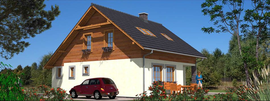 Fundamenty: żelbetowe, wylewane Ściany zewnetrzne: murowane, jednowarstwowe, beton komórkowy lub ceramika Strop: żelbetowy, prefabrykowany Schody: żelbetowe lub drewniane. Pokrycie dachu: dachówka betonowa. Nachylenie dachu: 40°. Sposób ogrzewania: piec dwufunkcyjny na gaz ziemny lub płynny. Alternatywnie piec na paliwo stałe.