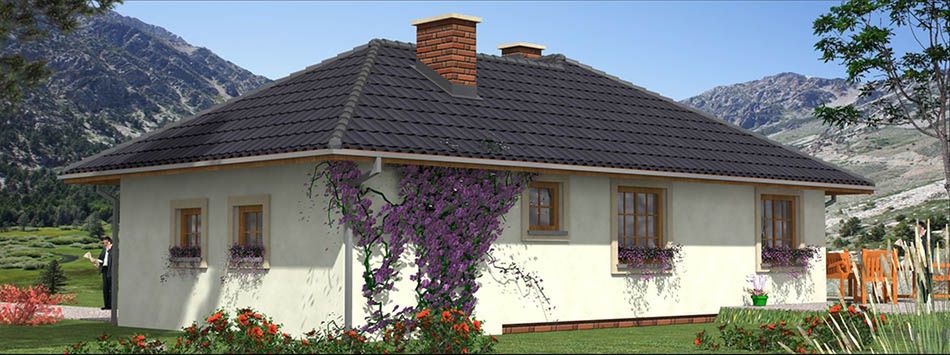 Fundamenty: żelbetowe, wylewane Ściany zewnetrzne: murowane, jednowarstwowe, beton komórkowy lub ceramika Strop: drewniany, belkowy, zamknięty. Pokrycie dachu: dachówka betonowa. Nachylenie dachu: 30°. Sposób ogrzewania: piec dwufunkcyjny na gaz ziemny lub płynny. Alternatywnie piec na paliwo stałe.