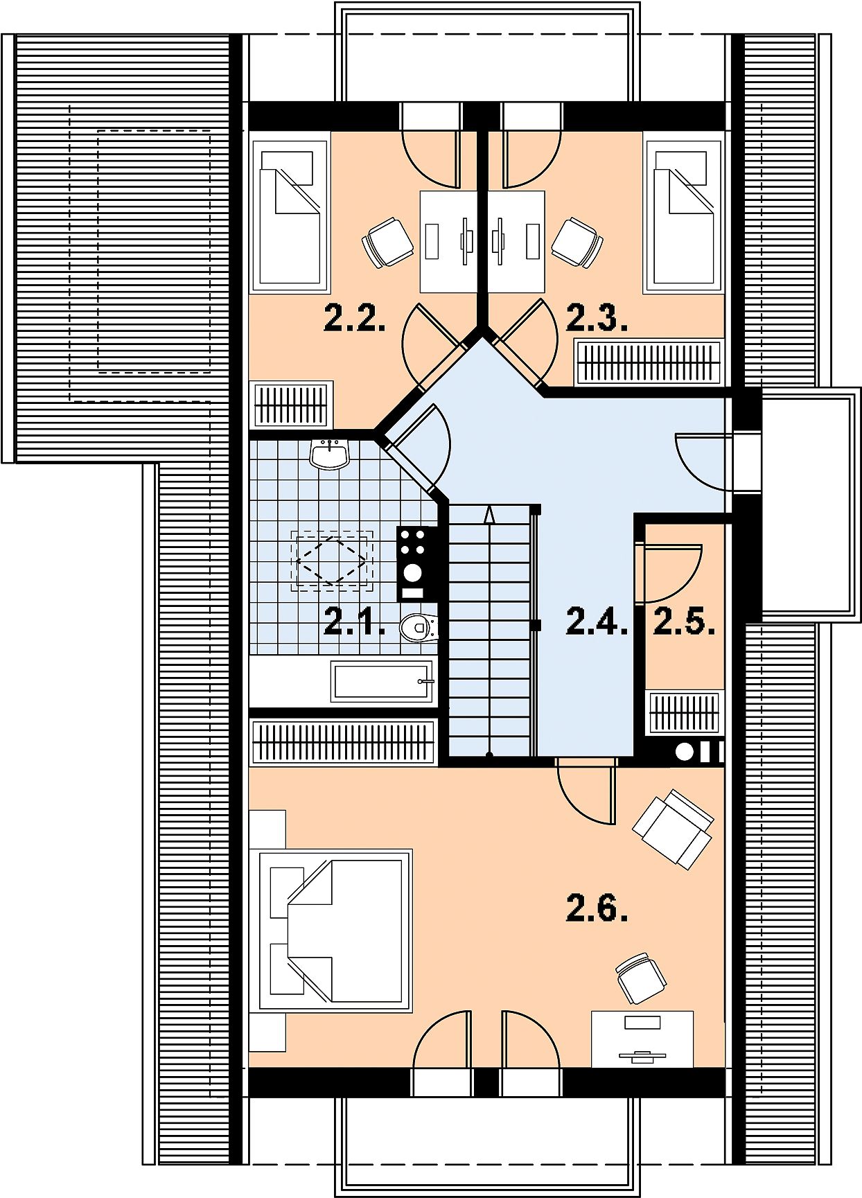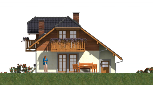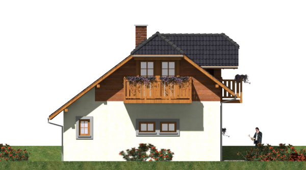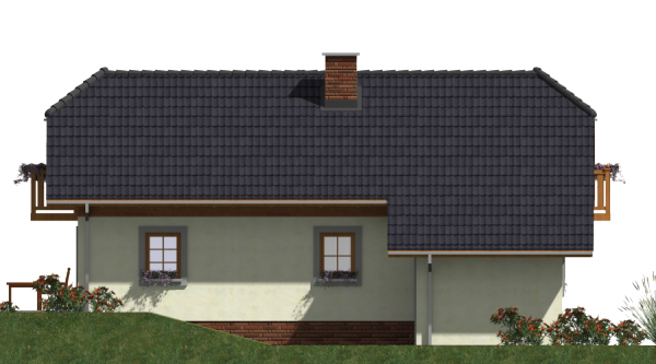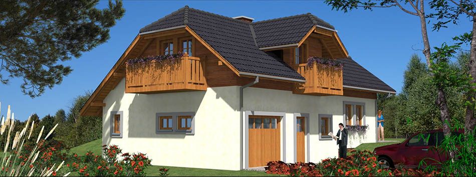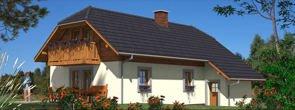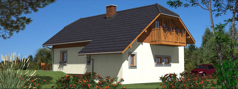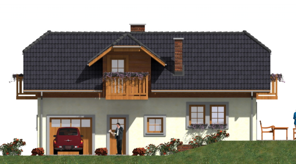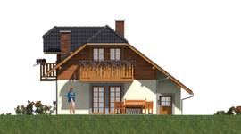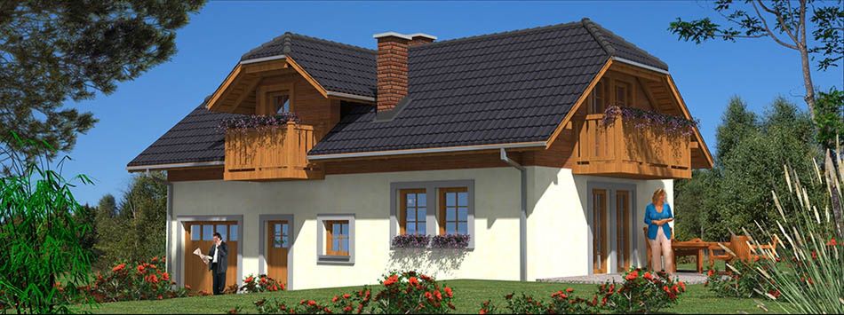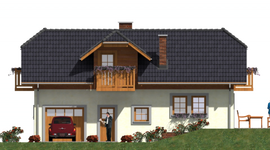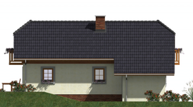 Graficzne opracowanie rzutów poglądowych widocznych na karcie projektu zostało wykonane przez Extradom.pl. Prezentowane przez Extradom.pl wizualizacje wykonane zostały przez autora projektu i należy poczytywać je jedynie za przykład i propozycję wykończenia, wizję architektoniczną autora projektu. Ostateczne wykończenie budynku może nastąpić na wiele sposobów. Szczegółowe rozwiązania zastosowane w oferowanej dokumentacji - w tym również ilość, lokalizacje i wygląd okien, drzwi, kominów - mogą w niewielkim stopniu różnić się od prezentowanej wizualizacji budynku.