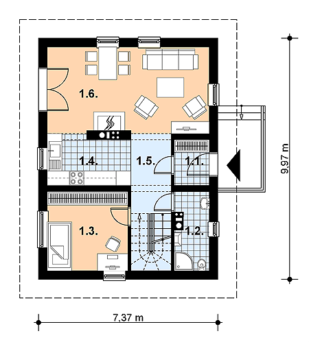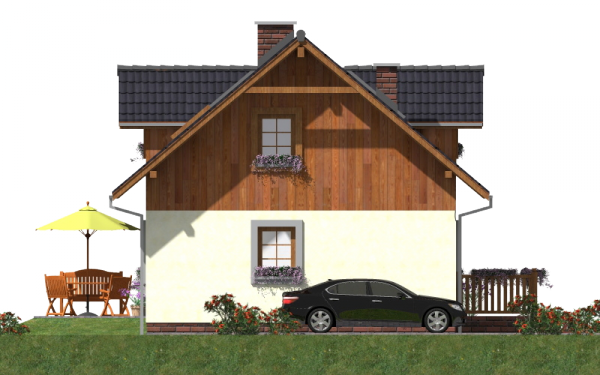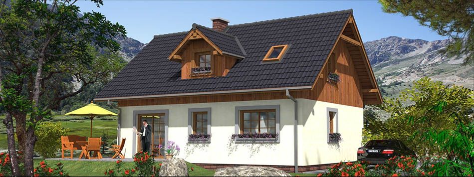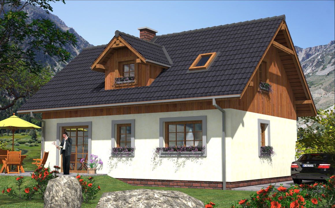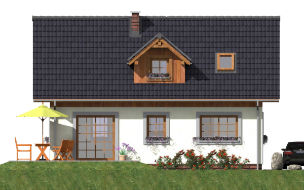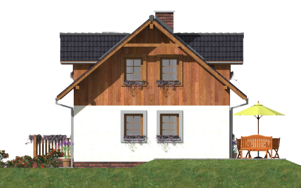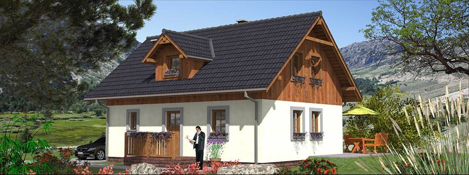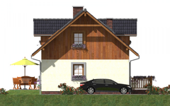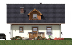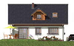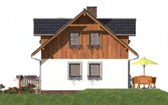 Graficzne opracowanie rzutów poglądowych widocznych na karcie projektu zostało wykonane przez Extradom.pl. Prezentowane przez Extradom.pl wizualizacje wykonane zostały przez autora projektu i należy poczytywać je jedynie za przykład i propozycję wykończenia, wizję architektoniczną autora projektu. Ostateczne wykończenie budynku może nastąpić na wiele sposobów. Szczegółowe rozwiązania zastosowane w oferowanej dokumentacji - w tym również ilość, lokalizacje i wygląd okien, drzwi, kominów - mogą w niewielkim stopniu różnić się od prezentowanej wizualizacji budynku.