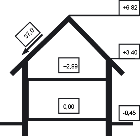 Fundamenty: żelbetowe, wylewane Ściany zewnetrzne: murowane, jednowarstwowe, beton komórkowy lub ceramika Strop: żelbetowy, prefabrykowany Schody: żelbetowe lub drewniane. Pokrycie dachu: dachówka betonowa Nachylenie dachu 37°. Sposób ogrzewania: piec dwufunkcyjny na gaz ziemny lub płynny. Alternatywnie piec na paliwo stałe.