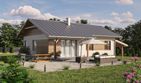 Graficzne opracowanie rzutów poglądowych widocznych na karcie projektu zostało wykonane przez Extradom.pl. Prezentowane przez Extradom.pl wizualizacje wykonane zostały przez autora projektu i należy poczytywać je jedynie za przykład i propozycję wykończenia, wizję architektoniczną autora projektu. Ostateczne wykończenie budynku może nastąpić na wiele sposobów. Szczegółowe rozwiązania zastosowane w oferowanej dokumentacji - w tym również ilość, lokalizacje i wygląd okien, drzwi, kominów - mogą w niewielkim stopniu różnić się od prezentowanej wizualizacji budynku.
