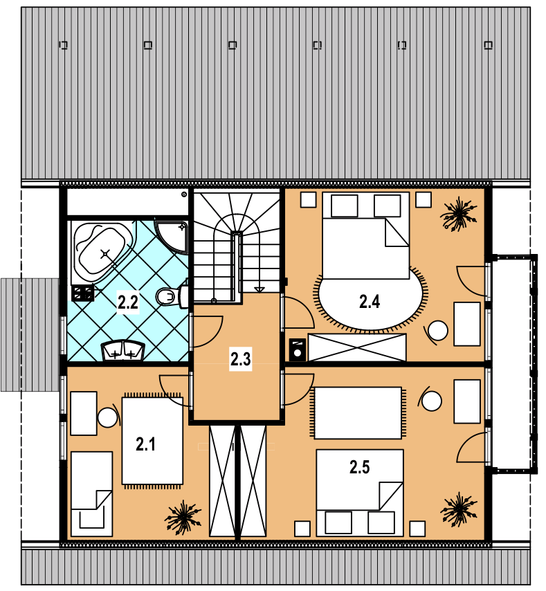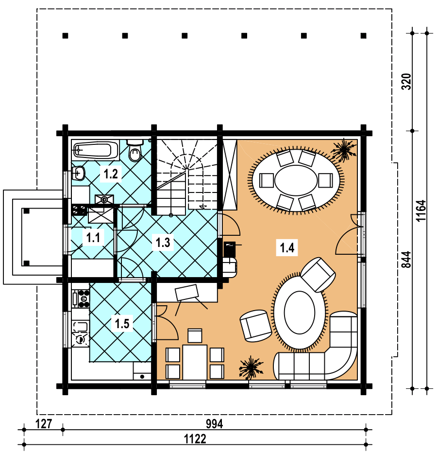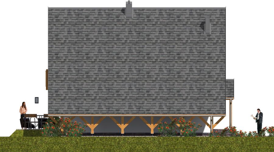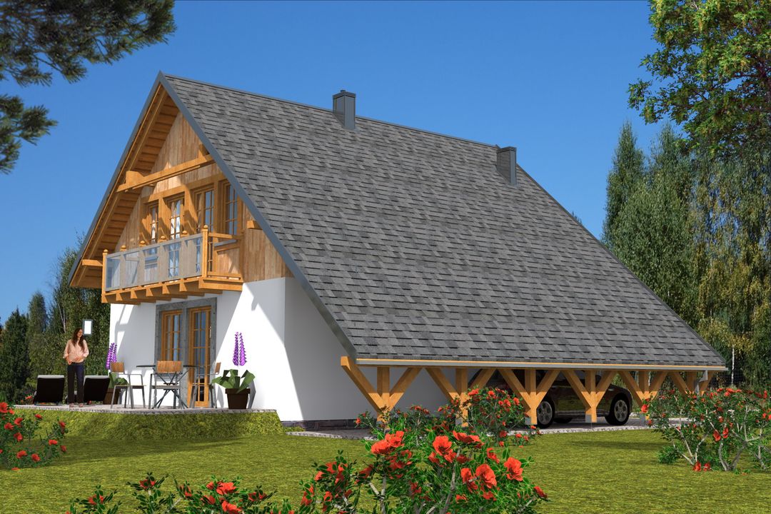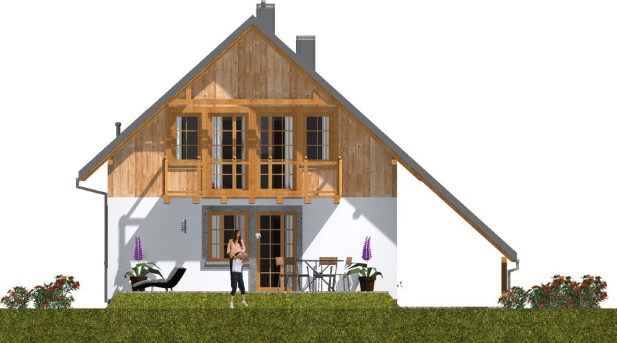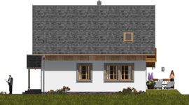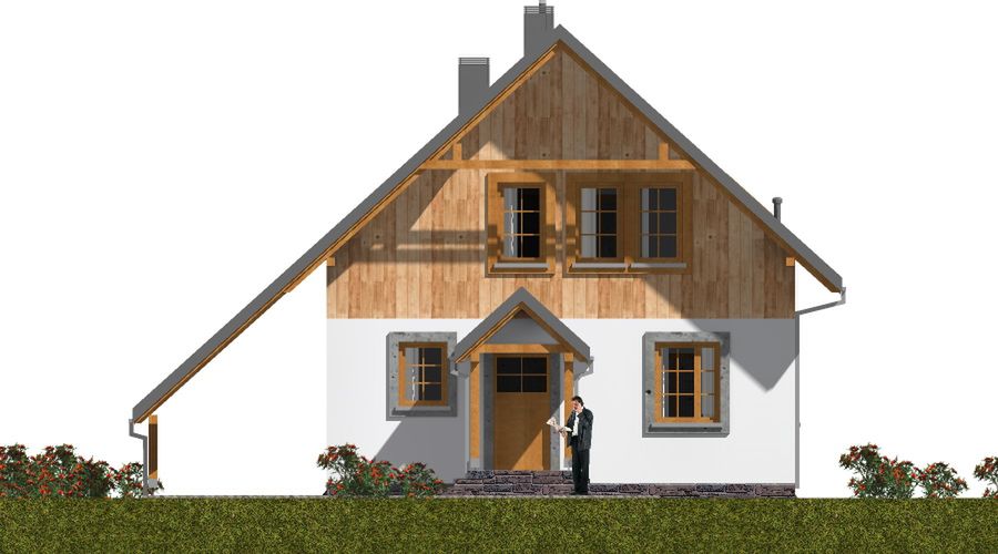 Graficzne opracowanie rzutów poglądowych widocznych na karcie projektu zostało wykonane przez Extradom.pl. Prezentowane przez Extradom.pl wizualizacje wykonane zostały przez autora projektu i należy poczytywać je jedynie za przykład i propozycję wykończenia, wizję architektoniczną autora projektu. Ostateczne wykończenie budynku może nastąpić na wiele sposobów. Szczegółowe rozwiązania zastosowane w oferowanej dokumentacji - w tym również ilość, lokalizacje i wygląd okien, drzwi, kominów - mogą w niewielkim stopniu różnić się od prezentowanej wizualizacji budynku.