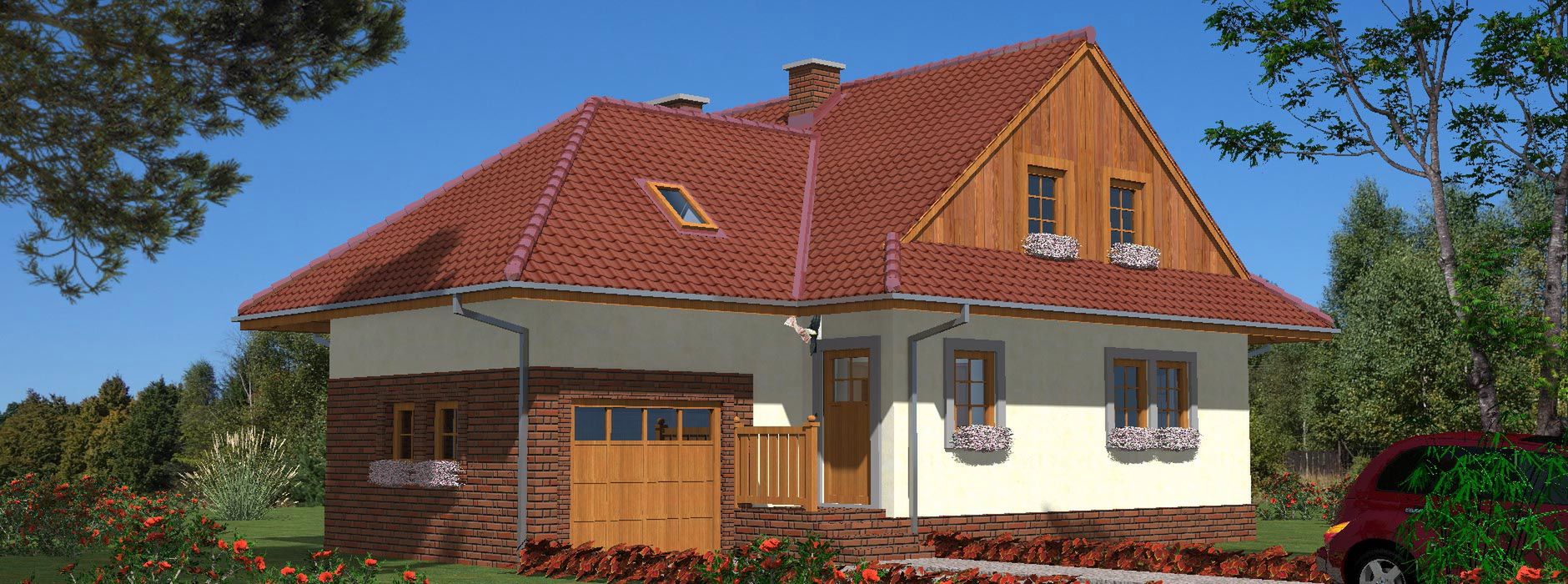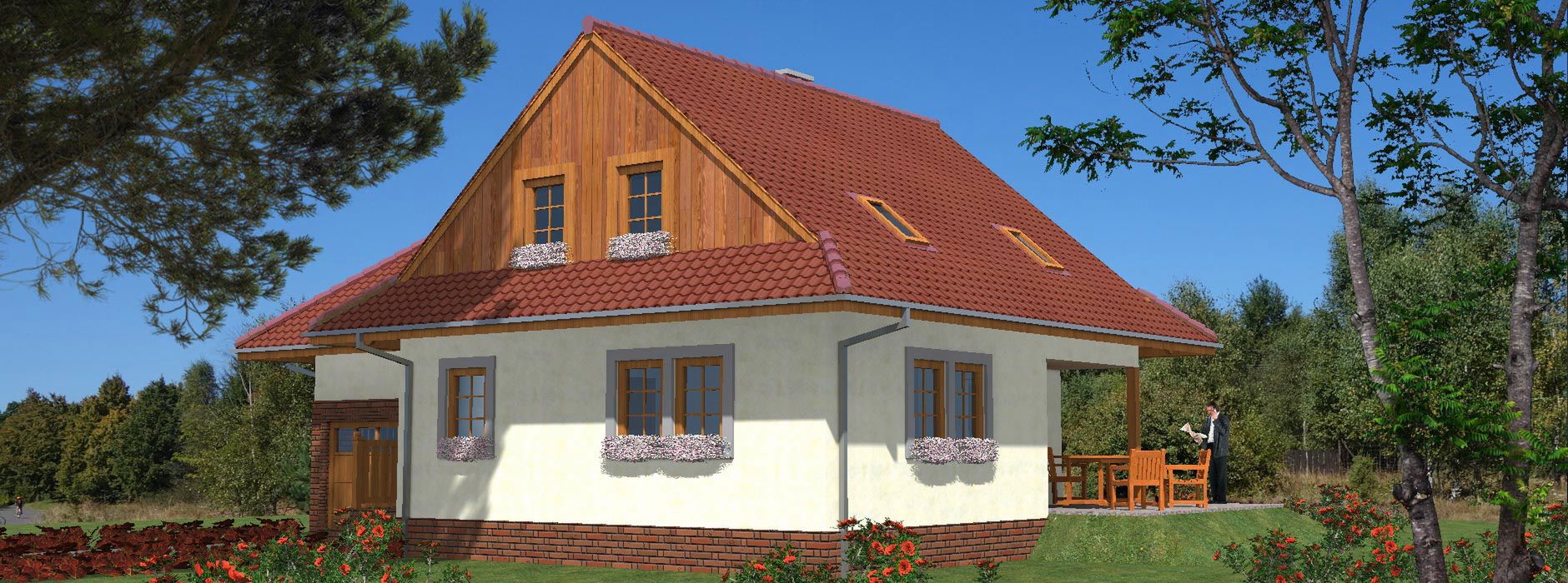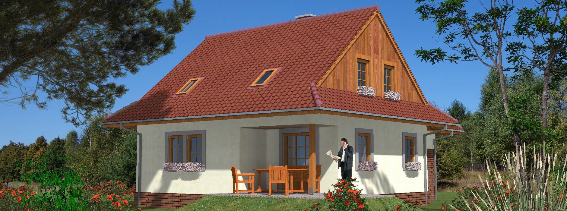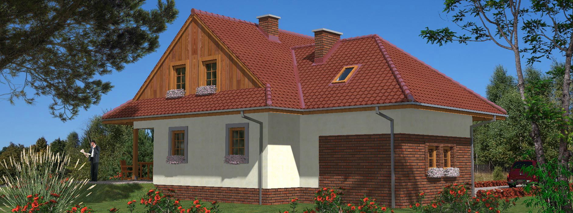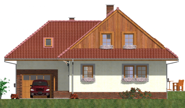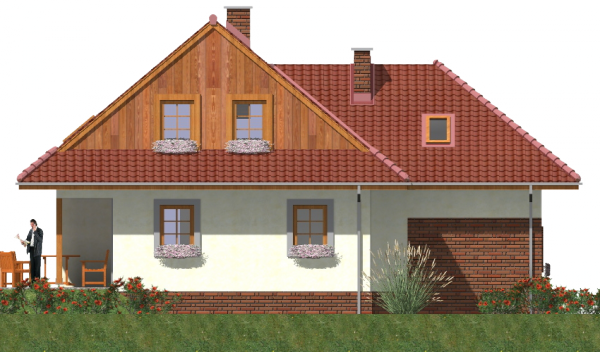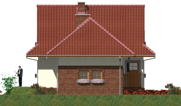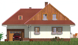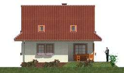 Graficzne opracowanie rzutów poglądowych widocznych na karcie projektu zostało wykonane przez Extradom.pl. Prezentowane przez Extradom.pl wizualizacje wykonane zostały przez autora projektu i należy poczytywać je jedynie za przykład i propozycję wykończenia, wizję architektoniczną autora projektu. Ostateczne wykończenie budynku może nastąpić na wiele sposobów. Szczegółowe rozwiązania zastosowane w oferowanej dokumentacji - w tym również ilość, lokalizacje i wygląd okien, drzwi, kominów - mogą w niewielkim stopniu różnić się od prezentowanej wizualizacji budynku.
