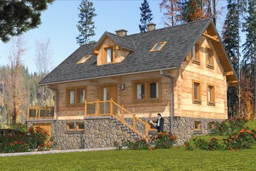 Fundamenty: żelbetowe, wylewane Ściany fundamentowe: betonowe wylewane lub z bloczków betonowych. Ściany zewnętrzne: Z bali drewnianych gr. 16 plus ocieplenie z wełny mineralnej Projekt dopuszcza ściany grubości 12, 20, 24, 30 cm ocieplone od wewnątrz wełną mineralną oraz gr. 62 cm bez ocieplenia. Schody: na poddasze drewniane; na parter żelbetowe. Strop: nad parterem belkowy, drewniany, otwarty; nad piwnicą żelbetowy, wylewany. Dach: dwuspadowy. Pokrycie dachu: gont bitumiczny. Nachylenie dachu: 40°. Sposób ogrzewania: Piec dwufunkcyjny na gaz ziemny lub płynny. Istnieje możliwość zastosowania pieca na paliwo stałe. Takie rozwiązanie inwestor może zastosować dokonując zmiany na etapie adaptacji lub w trakcie użytkowania budynku.