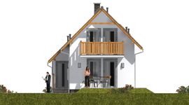 Graficzne opracowanie rzutów poglądowych widocznych na karcie projektu zostało wykonane przez Extradom.pl. Prezentowane przez Extradom.pl wizualizacje wykonane zostały przez autora projektu i należy poczytywać je jedynie za przykład i propozycję wykończenia, wizję architektoniczną autora projektu. Ostateczne wykończenie budynku może nastąpić na wiele sposobów. Szczegółowe rozwiązania zastosowane w oferowanej dokumentacji - w tym również ilość, lokalizacje i wygląd okien, drzwi, kominów - mogą w niewielkim stopniu różnić się od prezentowanej wizualizacji budynku.