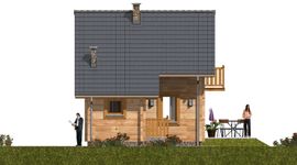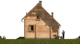 Fundamenty: żelbetowe, wylewane. Ściany zewnętrzne: Z bali drewnianych gr. 16 plus ocieplenie 12 cm. Projekt dopuszcza ściany grubości 12, 20, 24, 30 cm ocieplone od wewnątrz wełną mineralną oraz gr. 62 cm bez ocieplenia. Schody: drewniane. Strop: drewniany, belkowy, otwarty. Dach: dwuspadowy. Pokrycie dachu: dachówka betonowa. Nachylenie dachu: 45°. Sposób ogrzewania: ogrzewanie kominkowe.