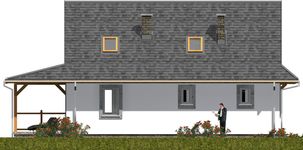 Graficzne opracowanie rzutów poglądowych widocznych na karcie projektu zostało wykonane przez Extradom.pl. Prezentowane przez Extradom.pl wizualizacje wykonane zostały przez autora projektu i należy poczytywać je jedynie za przykład i propozycję wykończenia, wizję architektoniczną autora projektu. Ostateczne wykończenie budynku może nastąpić na wiele sposobów. Szczegółowe rozwiązania zastosowane w oferowanej dokumentacji - w tym również ilość, lokalizacje i wygląd okien, drzwi, kominów - mogą w niewielkim stopniu różnić się od prezentowanej wizualizacji budynku.