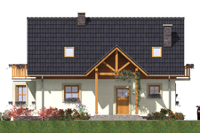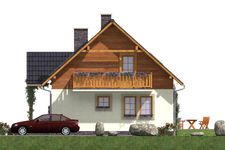 Graficzne opracowanie rzutów poglądowych widocznych na karcie projektu zostało wykonane przez Extradom.pl. Prezentowane przez Extradom.pl wizualizacje wykonane zostały przez autora projektu i należy poczytywać je jedynie za przykład i propozycję wykończenia, wizję architektoniczną autora projektu. Ostateczne wykończenie budynku może nastąpić na wiele sposobów. Szczegółowe rozwiązania zastosowane w oferowanej dokumentacji - w tym również ilość, lokalizacje i wygląd okien, drzwi, kominów - mogą w niewielkim stopniu różnić się od prezentowanej wizualizacji budynku.